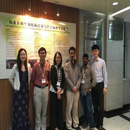 會(huì)上,Chrystine博士作了題為“Whole genome sequencing ofVibrio parahaemolyticusstrains associated with EMS/AHPND in shrimp aquaculture in Malaysia”的學(xué)術(shù)報(bào)告,展示了馬來西亞致急性肝胰腺壞死病副溶血弧菌的系統(tǒng)性流行病學(xué)研究結(jié)果;Thirugnansambandam博士作了題為“Whole-genome sequencing analysis ofVibrio harveyiRT-6 strain from infected shrimp:Litopenaeus vannameiusing illumina platform”的學(xué)術(shù)報(bào)告,介紹了一株感染凡納濱對(duì)蝦的哈維氏弧菌RT-6株的全基因組情況;傅松哲博士作了題為“Application of genomic epidemiology on the traceability of aquatic pathogens”的學(xué)術(shù)報(bào)告,通過4個(gè)案例講述了基因組流行病學(xué)在水產(chǎn)病原溯源上的應(yīng)用。三位專家的精彩報(bào)告引起了與會(huì)人員的強(qiáng)烈興趣,并展開了熱烈討論,并就雙方未來對(duì)蝦病害和基因組流行病學(xué)的相關(guān)研究達(dá)成初步合作意向。