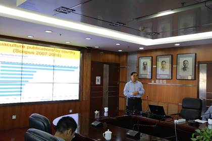 會(huì)上,李健副所長(zhǎng)對(duì)秦建光教授來訪表示歡迎,并簡(jiǎn)要介紹了黃海水產(chǎn)研究所歷史沿革、研究領(lǐng)域、科研成果、人才培養(yǎng)、產(chǎn)業(yè)支撐等方面的情況,希望雙方能夠在科學(xué)研究和人才交流等方面繼續(xù)加強(qiáng)合作,共同推動(dòng)海水養(yǎng)殖業(yè)健康發(fā)展。秦建光教授對(duì)黃海水產(chǎn)研究所的熱情接待表示感謝,并作了題為“Aquaculture Research Status, Achievement and Perspective”的報(bào)告,深入剖析了世界水產(chǎn)養(yǎng)殖在近幾十年取得快速發(fā)展的原因,以及未來水產(chǎn)養(yǎng)殖業(yè)將要面臨的機(jī)遇與挑戰(zhàn)。隨后,秦建光教授作了題為“Tips on writing scientific journal papers”的講座,從作者、編輯和審稿人等不同角度,系統(tǒng)闡述了如何寫好一篇學(xué)術(shù)論文,引起了大家的廣泛興趣和熱烈討論。與會(huì)人員還探討了在海水養(yǎng)殖領(lǐng)域的合作潛力,并討論了弗林德斯大學(xué)派學(xué)生來黃海水產(chǎn)研究所訪學(xué)的相關(guān)事宜,為今后開展具體的合作研究和人員互訪打下了堅(jiān)實(shí)基礎(chǔ)。