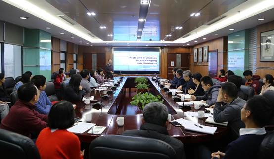 會(huì)上,金顯仕所長(zhǎng)對(duì)Suam Kim教授來(lái)所訪問交流表示歡迎,他表示,Suam Kim教授是國(guó)際著名漁業(yè)海洋學(xué)家,為世界漁業(yè)資源可持續(xù)發(fā)展作出了重要貢獻(xiàn),希望雙方借此次契機(jī),加強(qiáng)溝通對(duì)接,推動(dòng)務(wù)實(shí)合作,為進(jìn)一步推動(dòng)中韓漁業(yè)科技交流作出積極貢獻(xiàn)。會(huì)上,Suam Kim教授作了題為“Fish and Fisheries in a Changing Environment”的學(xué)術(shù)報(bào)告,系統(tǒng)介紹了20世紀(jì)50年代以來(lái)漁業(yè)資源變動(dòng)與環(huán)境變化的關(guān)系,重點(diǎn)闡述了氣候變化對(duì)漁業(yè)資源變動(dòng)的影響,講解了北太平洋溯河性魚類資源變動(dòng)、魚類早期生活史與其資源補(bǔ)充和漁場(chǎng)形成機(jī)制與研究歷史等;他指出,海洋暖化、酸化和缺氧是當(dāng)今全球變化研究的三大熱題,而如何處理好自然環(huán)境-漁業(yè)資源-人類活動(dòng)這三位一體的相互關(guān)系是基于生態(tài)系統(tǒng)漁業(yè)管理模式的關(guān)鍵。唐啟升院士指出,全球變化是一個(gè)系統(tǒng)的綜合的過(guò)程,海洋生態(tài)系統(tǒng)的變化亦是一個(gè)復(fù)雜的過(guò)程,希望科研人員潛心研究,為漁業(yè)資源的可持續(xù)利用作出積極貢獻(xiàn)。