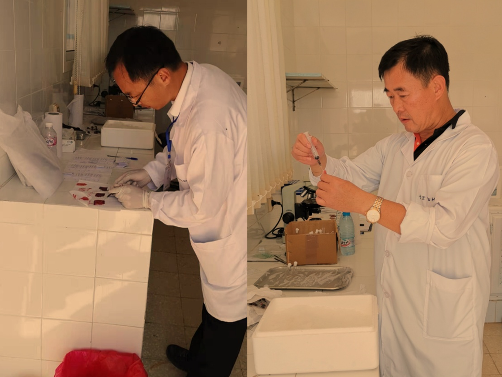 項目組成員在突尼斯養(yǎng)殖場實驗室進行樣品采集