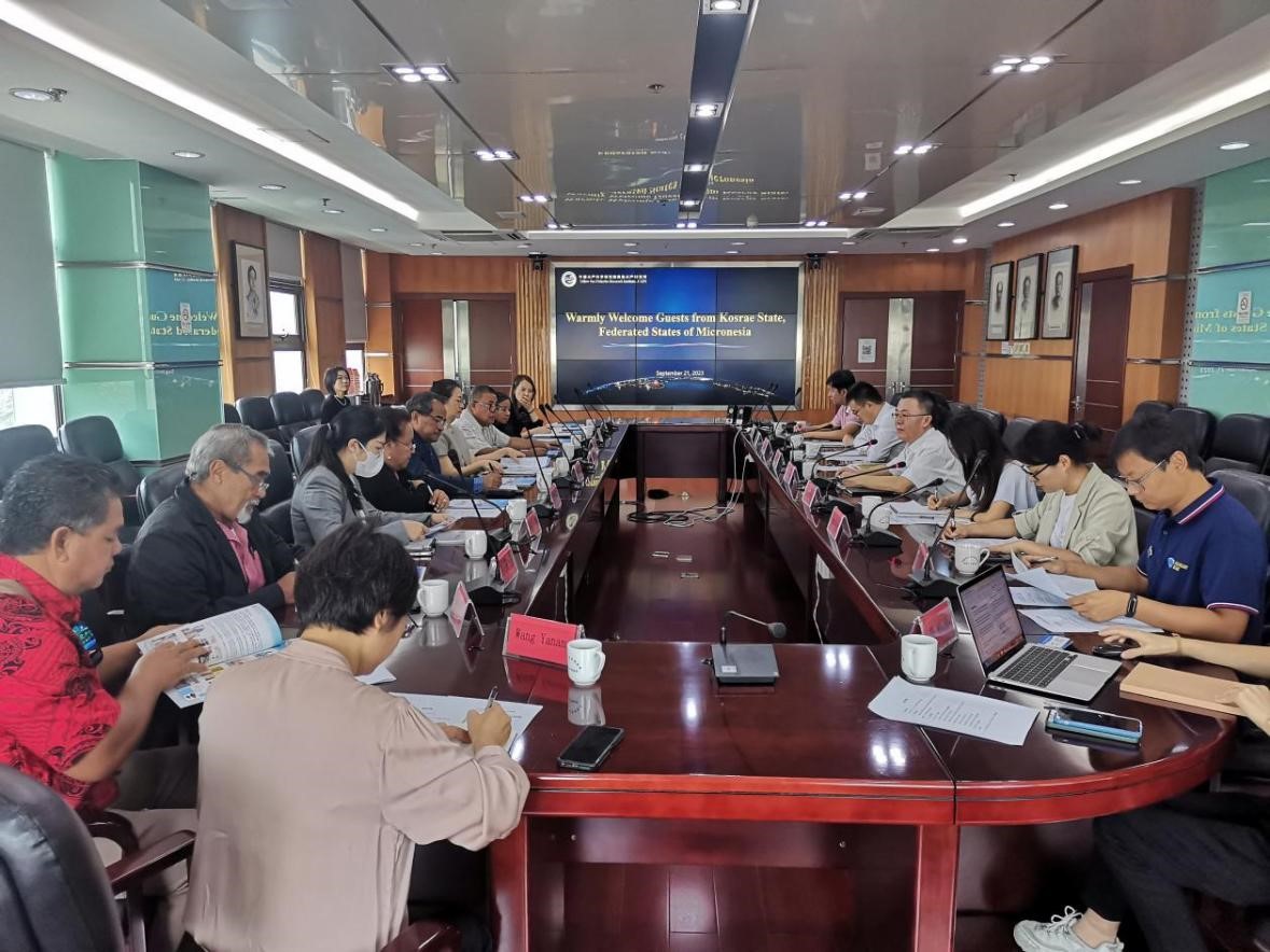 9月21日,密克羅尼西亞聯(lián)邦科斯雷州副州長阿爾西·G·奈納(Arthy G Nena)、議會副議長薩爾帕斯·蒂爾法斯(Salpasr Tilfas)、資源經(jīng)濟(jì)廳廳長羅爾納·喬(Rolner Joe)等一行到中國水產(chǎn)科學(xué)研究院黃海水產(chǎn)研究所訪問交流。山東省委外辦相關(guān)同志、青島市委副秘書長林鑌以及青島市外辦、青島市海洋發(fā)展局有關(guān)負(fù)責(zé)同志陪同。黃海水產(chǎn)研究所所長金顯仕、所長助理單秀娟以及相關(guān)職能部門負(fù)責(zé)人接待了阿爾西·G·奈納一行,并進(jìn)行座談。