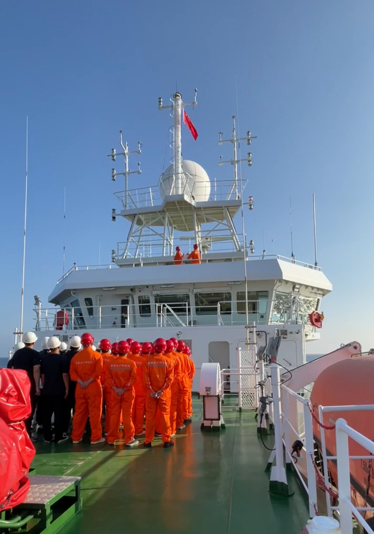 “藍(lán)海101”號全體成員舉行升旗儀式