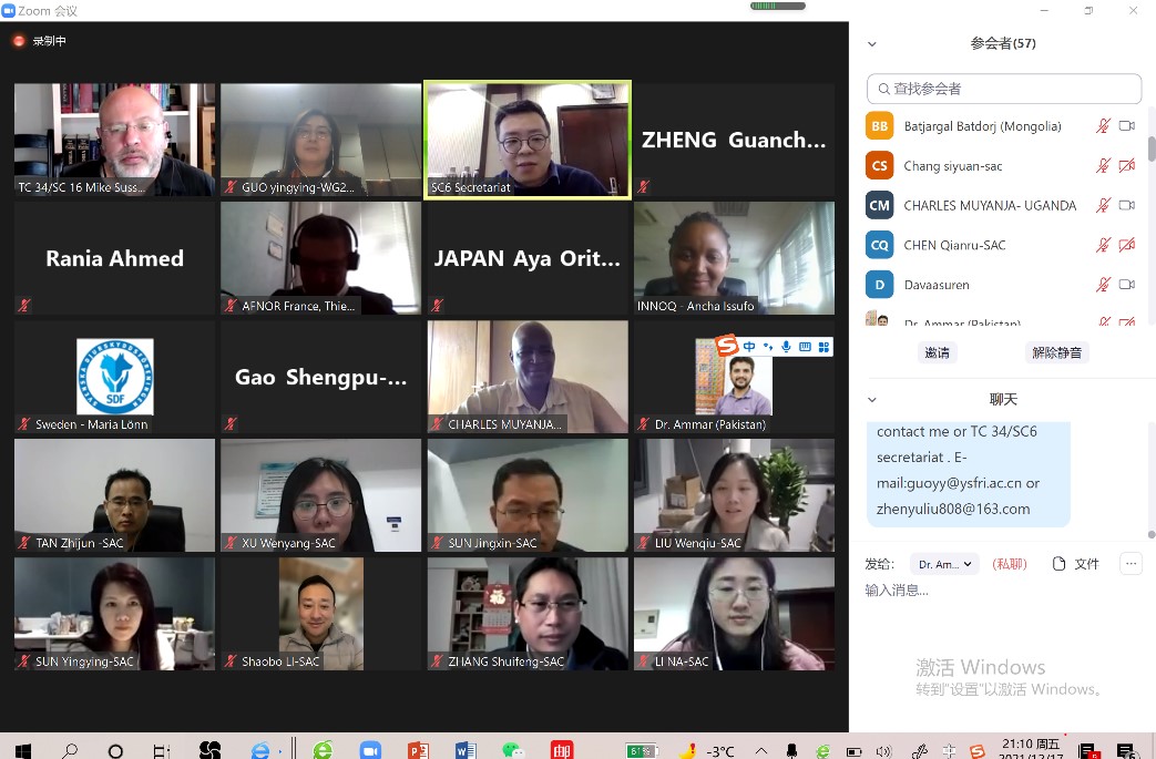 ISO標(biāo)準(zhǔn)申報(bào)規(guī)范且立項(xiàng)程序復(fù)雜。此前在2021年12月16日至17日召開的ISO/TC34/SC6第25屆年會上,來自中國、美國、俄羅斯、法國、伊朗、蒙古國、瑞典等15個成員國家共80余名代表通過視頻會議,對9項(xiàng)國際標(biāo)準(zhǔn)新項(xiàng)目提案進(jìn)行立項(xiàng)審議,我所提出的這2項(xiàng)標(biāo)準(zhǔn)提案得到各國代表的關(guān)注與支持。在ISO/TC34/SC6秘書處積極推動下,經(jīng)過27個P-成員國的磋商、論證、投票等程序,最終獲得立項(xiàng)。