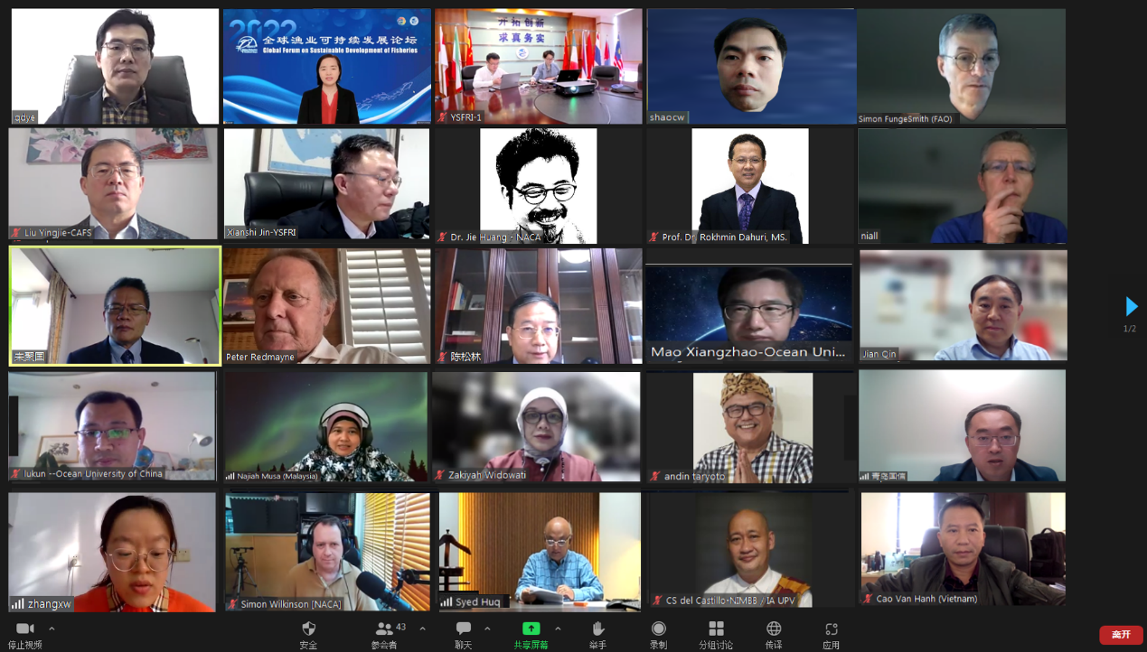 為加強水產(chǎn)貿易國際交流與合作,交流借鑒全球漁業(yè)可持續(xù)發(fā)展的先進理念、技術和模式,推動全球漁業(yè)健康可持續(xù)發(fā)展,中國水產(chǎn)科學研究院黃海水產(chǎn)研究所和農(nóng)業(yè)農(nóng)村部農(nóng)業(yè)貿易促進中心12月13日以線上形式共同舉辦“2022全球漁業(yè)可持續(xù)發(fā)展論壇——水產(chǎn)貿易發(fā)展論壇暨第五屆絲路國家水產(chǎn)養(yǎng)殖國際論壇”。農(nóng)業(yè)農(nóng)村部農(nóng)業(yè)貿易促進中心主任馬洪濤,黃海水產(chǎn)研究所所長金顯仕,美國海洋展覽公司總裁Peter Redmayne,亞太水產(chǎn)養(yǎng)殖中心網(wǎng)(NACA)總干事黃倢,中國工程院院士陳松林先后在論壇開幕式致辭。