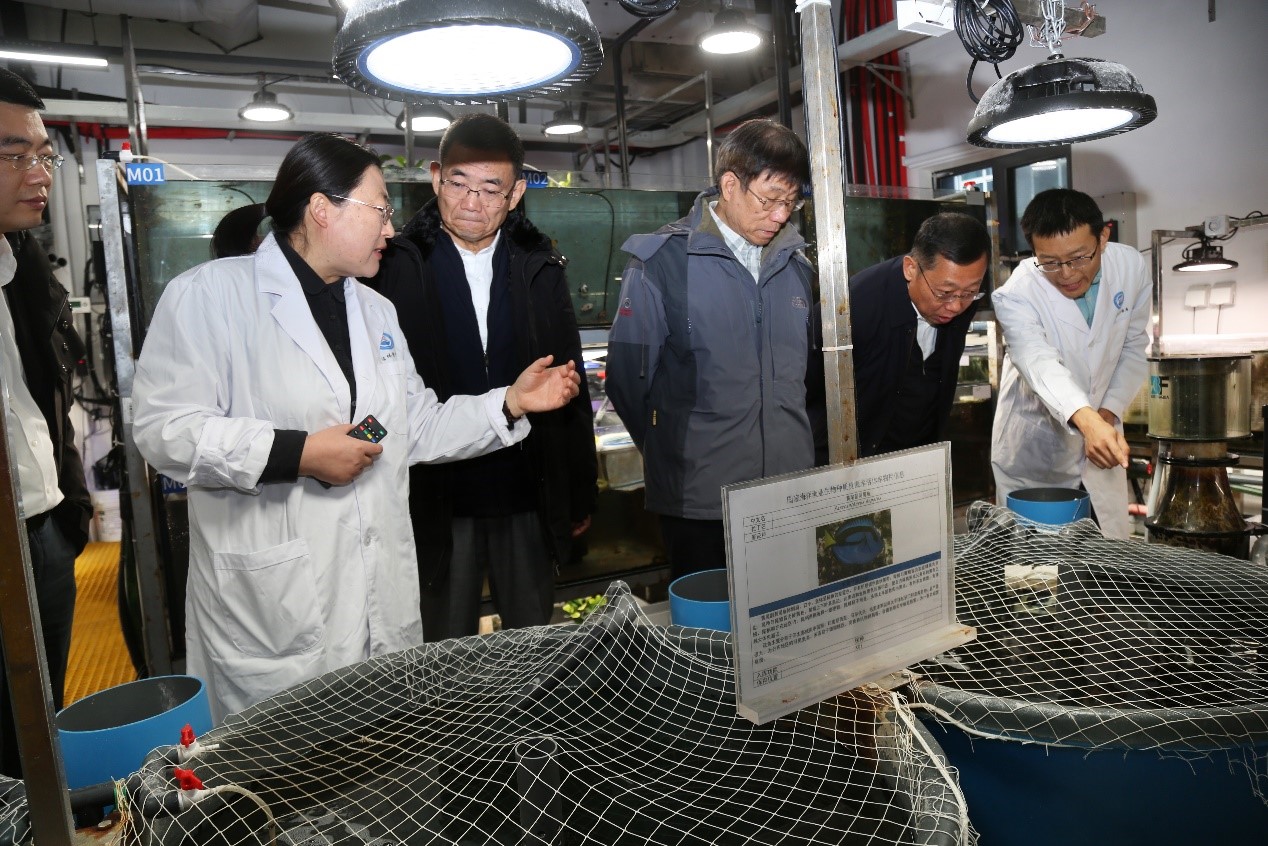 11月24日,國務院國資委國有重點大型企業(yè)監(jiān)事會原主席楊堅,全國政協(xié)委員、中國農業(yè)科學院原黨組書記張合成,中國遠洋漁業(yè)協(xié)會會長、農業(yè)農村部漁業(yè)漁政管理局原局長張顯良等一行4人到國家海洋漁業(yè)生物種質資源庫(以下簡稱“資源庫”)調研。中國工程院院士唐啟升,中國水產科學研究院黃海水產研究所副所長葉乃好、榮小軍、原副所長辛福言及相關部門負責人員接待了調研組一行。