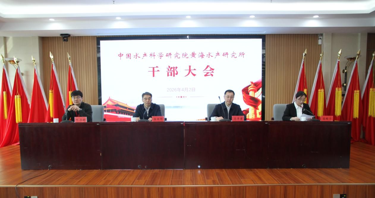 4月2日,中國水產(chǎn)科學(xué)研究院黃海水產(chǎn)研究所召開干部大會,宣布部黨組、院黨組關(guān)于黃海所領(lǐng)導(dǎo)班子調(diào)整的決定,中國水產(chǎn)科學(xué)研究院院長崔國輝、人事處處長孫昭寧出席會議。