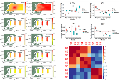 研究結(jié)果表明,規(guī)?;愒屦B(yǎng)殖是桑溝灣內(nèi)海水碳酸鹽體系時(shí)空變化的主要生物控制因素。海帶通過吸收水體中無機(jī)碳,提升海水的pH和碳酸鈣飽和度,維持海水碳酸鹽系統(tǒng)穩(wěn)定,為貝類等鈣化生長(zhǎng)提供適宜生長(zhǎng)、發(fā)育的環(huán)境;牡蠣養(yǎng)殖區(qū)表現(xiàn)出快速的碳酸鈣沉積現(xiàn)象,單位水體的鈣化速率甚至超過珊瑚礁生態(tài)系統(tǒng),研究結(jié)果證實(shí)了貝藻多營(yíng)養(yǎng)層次綜合養(yǎng)殖模式是一種綠色高效的生態(tài)養(yǎng)殖模式,不僅具有較好的經(jīng)濟(jì)價(jià)值,同時(shí)可為減緩全球氣候變化的影響提供應(yīng)對(duì)策略。