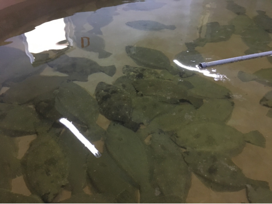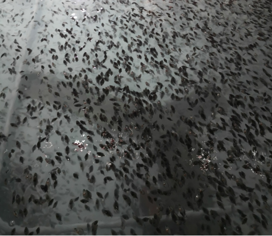 專家組聽取了課題負(fù)責(zé)人的匯報,經(jīng)查看生產(chǎn)、銷售記錄,現(xiàn)場核查、取樣測量和質(zhì)詢討論,形成驗(yàn)收意見:2020年3月27-28日,日照市海洋水產(chǎn)資源增殖有限公司從黃海水產(chǎn)研究所海陽試驗(yàn)基地引進(jìn)“鲆優(yōu)2號”受精卵5公斤,培育出“鲆優(yōu)2號”魚苗約280萬尾。隨機(jī)取樣30尾測量全長,全長范圍4.4-6.1 cm,平均全長5.08 cm;“鲆優(yōu)2號”魚苗體型、體色正常,活力強(qiáng)。