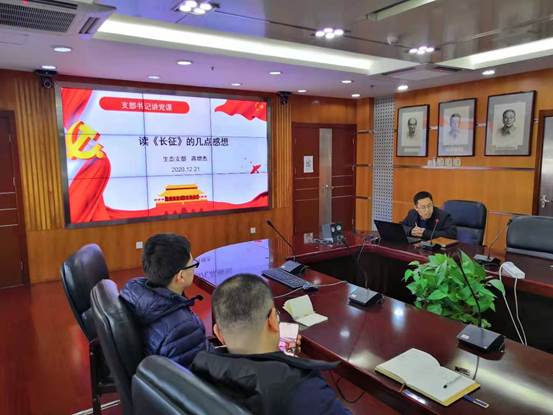 蔣增杰書記首先作了題為“讀《長(zhǎng)征》的幾點(diǎn)感想”的黨課報(bào)告。報(bào)告選取了紅軍長(zhǎng)征過程中發(fā)生的“飛奪瀘定橋”“百丈關(guān)戰(zhàn)役”等六個(gè)典型事例進(jìn)行解析,結(jié)合科研工作實(shí)際,闡釋了“形式”與“形式主義”兩者之間的區(qū)別,勉勵(lì)全體黨員逆境中要保持積極、樂觀的態(tài)度,要培養(yǎng)勇于打破“教條主義”“本本主義”束縛的魄力和能力,強(qiáng)化作風(fēng)建設(shè);在科研工作和生活中要心存底線思維,恪守學(xué)術(shù)道德,領(lǐng)導(dǎo)干部要有身先士卒、勇挑重?fù)?dān)的擔(dān)當(dāng)精神,杜絕形式主義、官僚主義。蔣增杰書記進(jìn)一步號(hào)召大家“讀長(zhǎng)征、強(qiáng)信念、促科研”,真正實(shí)現(xiàn)黨建與科研工作的有效融合、相互促進(jìn)。