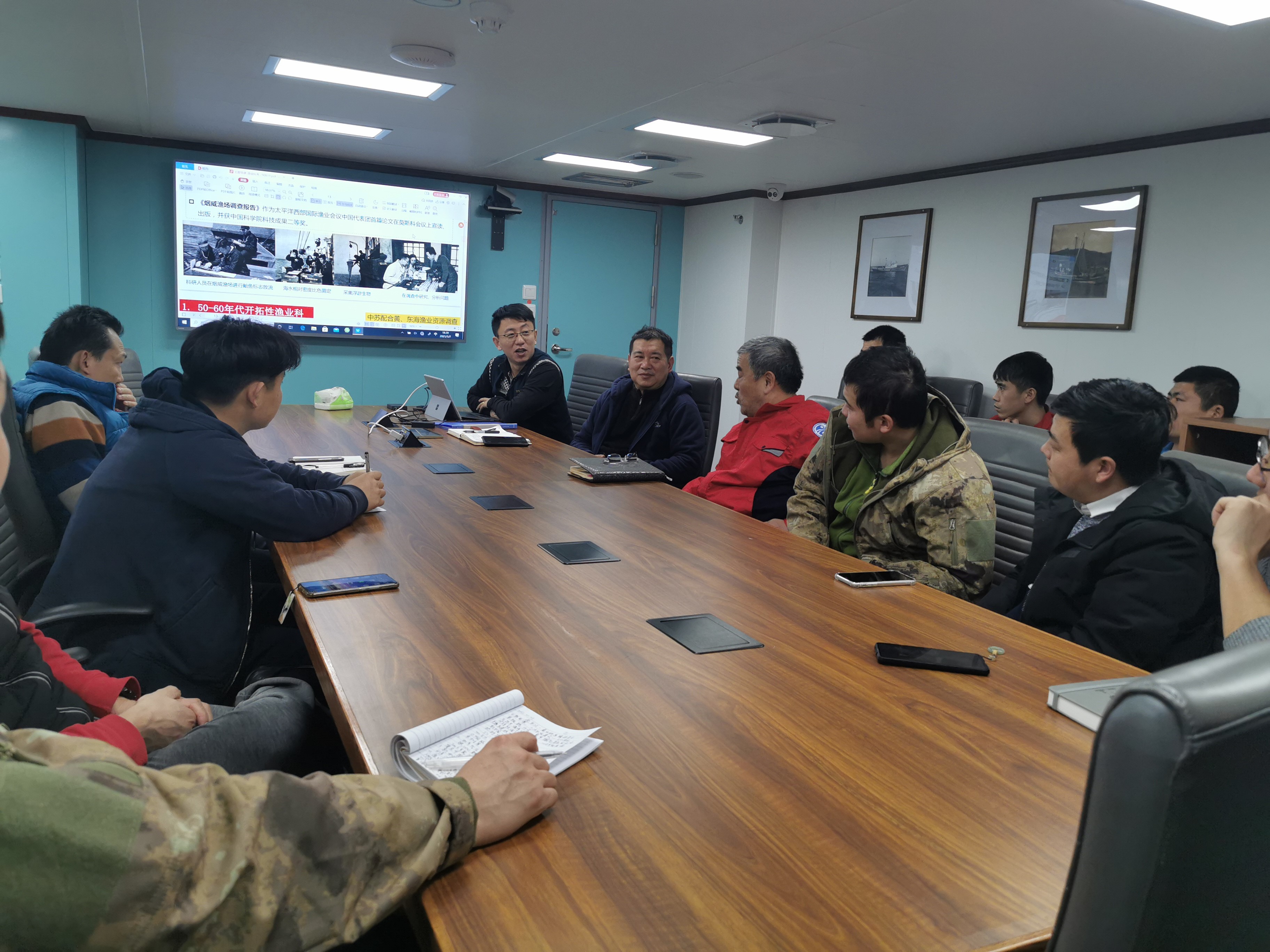 2021年伊始,中國(guó)水產(chǎn)科學(xué)研究院黃海水產(chǎn)研究所漁業(yè)科學(xué)調(diào)查船“藍(lán)海101”號(hào)前往黃海北部開展?jié)O業(yè)科學(xué)調(diào)查。出海調(diào)查期間,藍(lán)海黨小組組織出海的黨員同志開展黃海水產(chǎn)研究所“漁業(yè)科考精神”學(xué)習(xí)交流活動(dòng),大家圍繞“團(tuán)隊(duì)協(xié)作、勇于擔(dān)當(dāng)、嚴(yán)謹(jǐn)求實(shí)、拼搏奉獻(xiàn)”這一主題,暢談自己對(duì)漁業(yè)科考的理解體會(huì)。