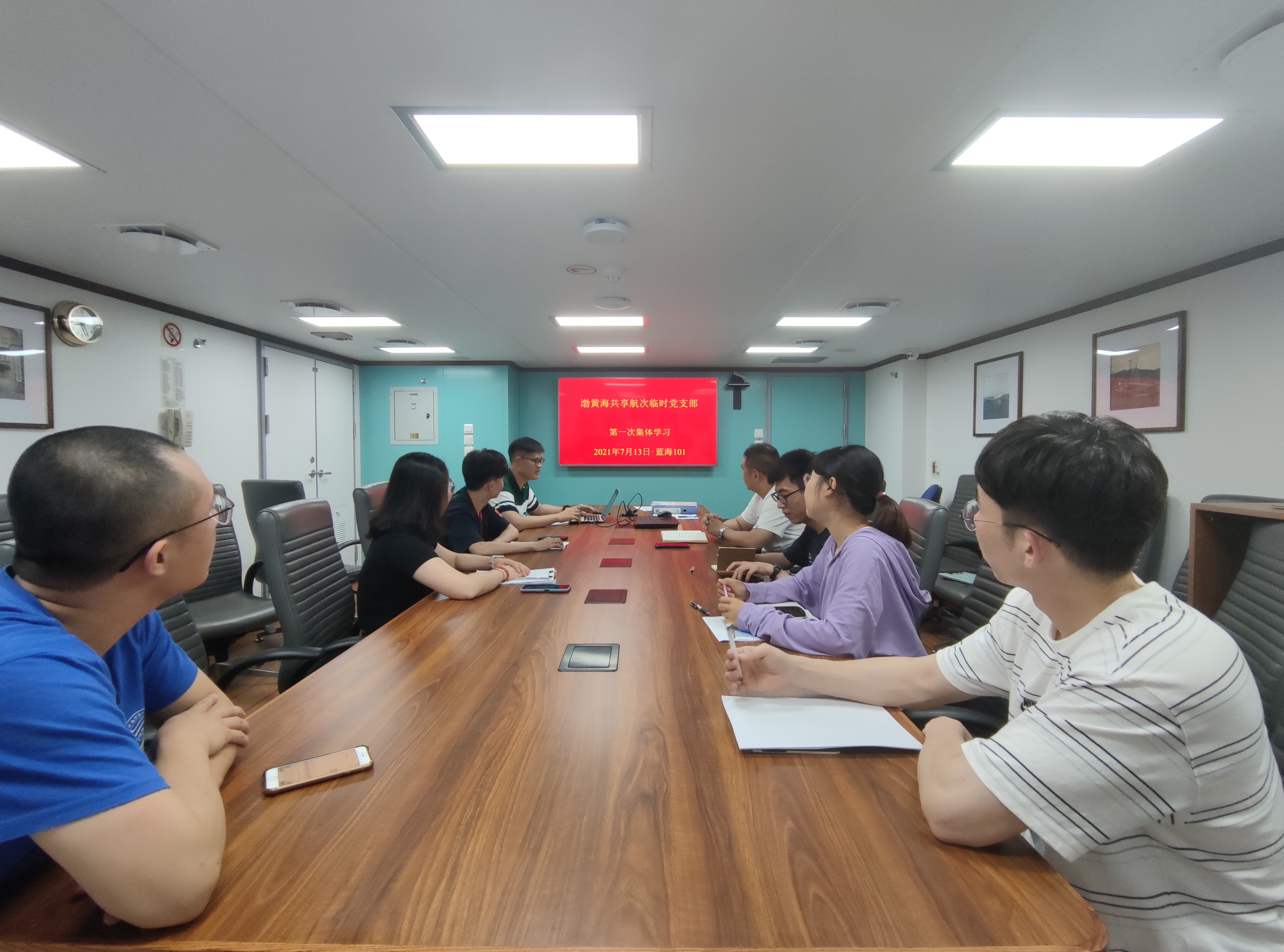 為充分發(fā)揮黨支部戰(zhàn)斗堡壘作用和黨員的先鋒模范作用,國家自然科學(xué)基金委“共享航次計(jì)劃2020年度渤黃海科學(xué)考察實(shí)驗(yàn)研究(NORC2021-01)”項(xiàng)目夏季航次申請成立了臨時(shí)黨支部,臨時(shí)黨支部由來自中國水產(chǎn)科學(xué)研究院黃海水產(chǎn)研究所、山東大學(xué)、中國海洋大學(xué)、天津大學(xué)、華東師范大學(xué)等5家單位的12名黨員同志組成,黃海水產(chǎn)研究所滕廣亮同志擔(dān)任臨時(shí)黨支部書記、“藍(lán)海101”號(hào)海洋漁業(yè)綜合科學(xué)調(diào)查船船長禹昊同志擔(dān)任副書記。臨時(shí)黨支部成立后立即著手開展工作,7月13日下午,開展了“學(xué)黨史、促科研、海洋強(qiáng)國有我”主題黨日活動(dòng),支部全體黨員和參航人員參加了活動(dòng),活動(dòng)由臨時(shí)黨支部書記滕廣亮同志主持。