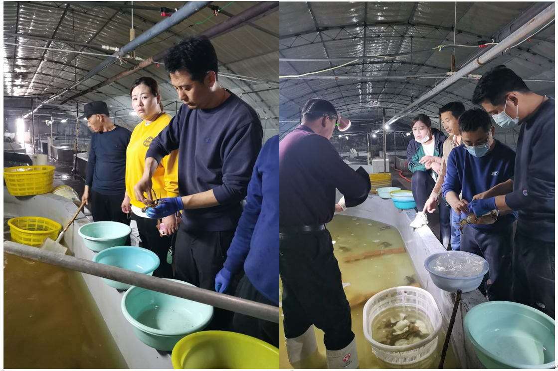 在團(tuán)隊(duì)負(fù)責(zé)人劉萍研究員指導(dǎo)下,育種支部蟹類種質(zhì)資源與育種團(tuán)隊(duì)的黨員高保全、孟憲亮以及呂建建等,長(zhǎng)期堅(jiān)守三疣梭子蟹育種一線,開(kāi)展科研和科技服務(wù)工作,利用團(tuán)隊(duì)培育的三疣梭子蟹“黃選1號(hào)”“黃選2號(hào)”新品種進(jìn)行種蟹培育與苗種擴(kuò)繁,培育的種蟹具有抱卵質(zhì)量好、親蟹利用率高等優(yōu)點(diǎn),深受市場(chǎng)歡迎。2022年春季,高保全、孟憲亮、呂建建克服疫情困難,與育種基地所在地疫情防控部門(mén)、交通管理部門(mén)反復(fù)溝通、多次研判,在做好防疫的同時(shí),踏上了梭子蟹育種之路,在育種基地連續(xù)奮戰(zhàn)25個(gè)日夜,圓滿完成了三疣梭子蟹“黃選1號(hào)”“黃選2號(hào)”新品種種蟹培育,為天津、河北、山東、江蘇等多家育苗場(chǎng)提供了優(yōu)質(zhì)抱卵種蟹1350只,按照每只親蟹培育苗種5萬(wàn)只來(lái)算,預(yù)計(jì)育苗6000余萬(wàn)只,推廣養(yǎng)殖6萬(wàn)余畝,大大解決了優(yōu)良種蟹匱乏這一難題,為推進(jìn)我國(guó)梭子蟹良種化進(jìn)程提供有力保障,為打好水產(chǎn)種業(yè)翻身仗貢獻(xiàn)力量。