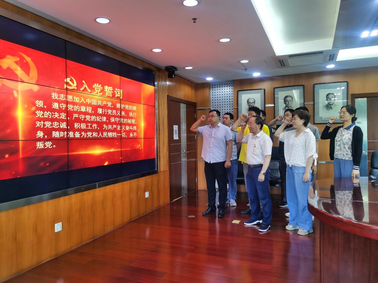 主題黨日活動(dòng)伊始,關(guān)長(zhǎng)濤書記帶領(lǐng)支部黨員一起面向黨旗莊嚴(yán)宣誓,重溫入黨誓詞,號(hào)召支部黨員堅(jiān)守初心使命,弘揚(yáng)偉大建黨精神,當(dāng)好“兩個(gè)確立”的堅(jiān)定擁護(hù)者、“兩個(gè)維護(hù)”的堅(jiān)決執(zhí)行者,進(jìn)一步強(qiáng)化黨員身份意識(shí),增強(qiáng)黨員的榮譽(yù)感和歸屬感。