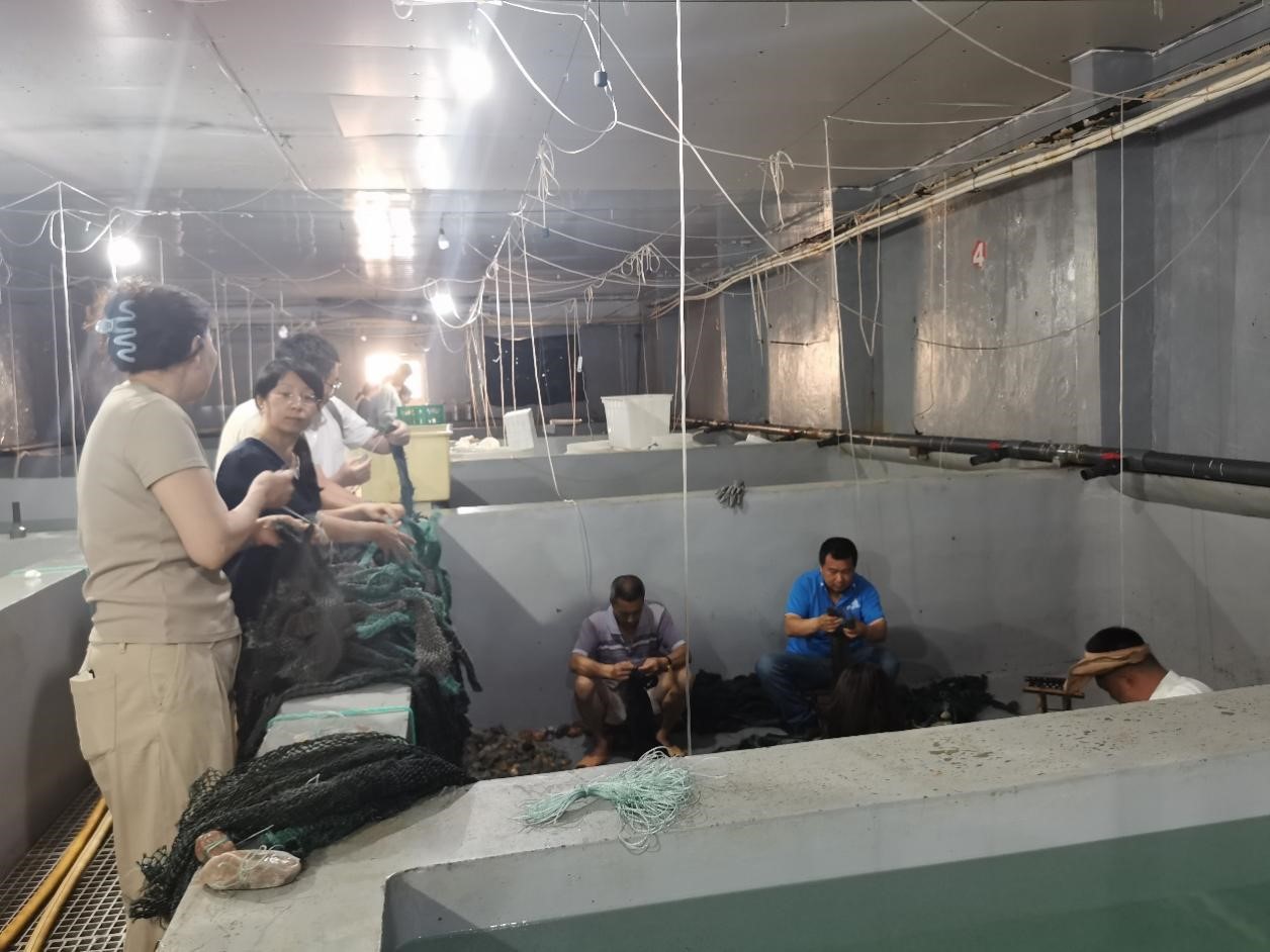 育種支部黨員在長島站的連城站區(qū)及孫家基地實(shí)地參觀了牡蠣選育、魚類養(yǎng)殖、藻類保種等工作現(xiàn)場,深入了解了長島站在貝類繁育與育種、魚類和藻類新養(yǎng)殖物種開發(fā)等方面取得的進(jìn)展,并與長島站職工共同進(jìn)行貝類附著基準(zhǔn)備及投放工作,體驗(yàn)貝類育苗實(shí)踐。