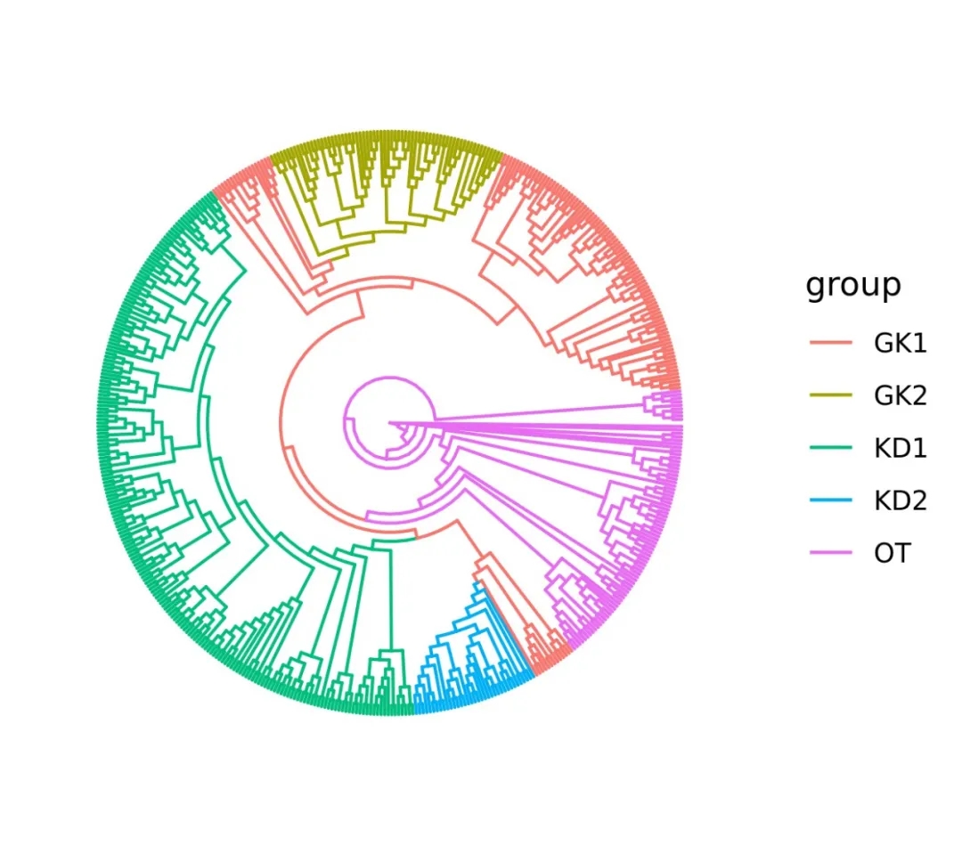 圖2,世界上主要對(duì)蝦品系的“黃海芯1號(hào)”聚類(lèi)圖