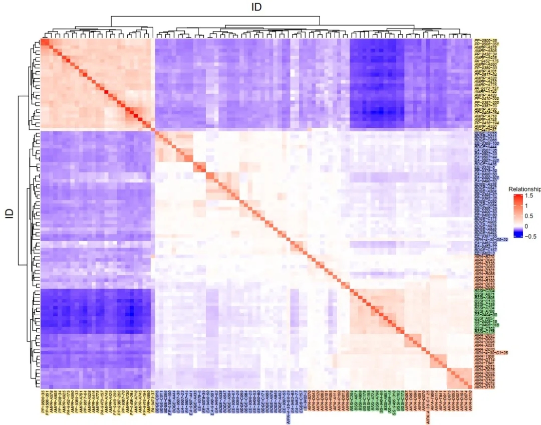 圖3,世界上主要對(duì)蝦品系的“黃海芯1號(hào)”親緣關(guān)系熱圖