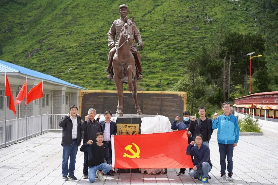在張經(jīng)武銅像前合影。
