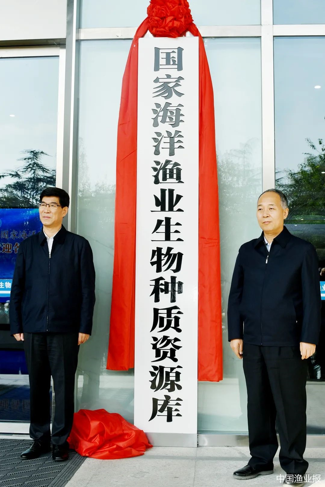 ▲農(nóng)業(yè)農(nóng)村部副部長馬有祥(右)和山東省副省長李猛(左)為國家海洋漁業(yè)生物種質(zhì)資源庫揭牌