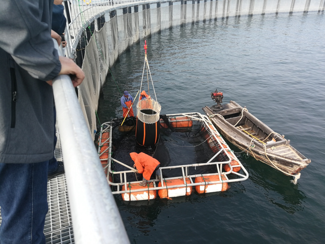 由中國(guó)水產(chǎn)科學(xué)研究院黃海水產(chǎn)研究所和萊州明波水產(chǎn)有限公司聯(lián)合開(kāi)展科研攻關(guān),在關(guān)長(zhǎng)濤研究員的帶領(lǐng)下,針對(duì)黃渤海區(qū)遠(yuǎn)海開(kāi)放海域特殊的海況條件及養(yǎng)殖設(shè)施大型化與智能化的發(fā)展需求,成果設(shè)計(jì)建造成大型鋼制管樁圍欄。就像開(kāi)頭我們見(jiàn)到的那樣,這個(gè)大型圍欄由172根鋼制管樁和超高分子量網(wǎng)衣組成,外層周長(zhǎng)400米,形成養(yǎng)殖水體約16萬(wàn)立方米,配套2個(gè)大型多功能平臺(tái)和6個(gè)小型平臺(tái),擁有活魚(yú)運(yùn)輸船、自動(dòng)吸魚(yú)泵等生產(chǎn)設(shè)備,具備規(guī)?;Ⅲw養(yǎng)殖功能,實(shí)現(xiàn)了自動(dòng)化、智能化管控。