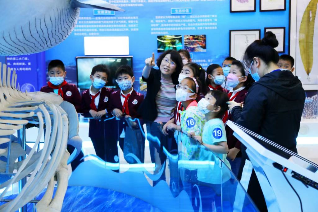 本次活動采取線上+線下同時進行的形式開展,并通過微信面向社會大眾積極推廣。在科普講座環(huán)節(jié),海洋漁業(yè)生物資源庫研發(fā)中心張波研究員、活體庫Abdallah Ghonimy博士和微生物庫楊冰研究員對國家海洋漁業(yè)生物種質資源庫科普資源、“Aquaculture Diversity in Egypt(埃及豐富多彩的漁業(yè)生物)”和“海水養(yǎng)殖動物健康漫談--爭做海洋動物健康小衛(wèi)士”等分別進行了宣講。講座圖文并茂、深入淺出地介紹了豐富多彩的海洋漁業(yè)生物和海水健康養(yǎng)殖的相關知識,并與線上、線下的觀眾進行了交流、互動。隨后實地參觀了科普展廳,專家們耐心、生動的講解讓同學們看得著迷,聽的入神。參觀結束后,每位參加活動的同學均獲贈由研發(fā)中心和黃海水產(chǎn)研究所“漁業(yè)資源增殖與養(yǎng)護團隊”聯(lián)合制作的《黃渤海鯨類的研究與保護》科普繪本,并對表現(xiàn)優(yōu)異的同學頒發(fā)了此次活動的研學證明。