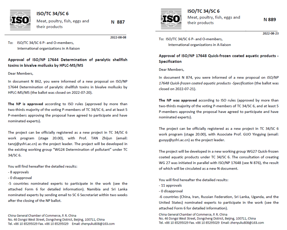 據(jù)了解,黃海所主導(dǎo)制定的我國(guó)水產(chǎn)領(lǐng)域首項(xiàng)國(guó)際標(biāo)準(zhǔn)《冷凍魚(yú)糜》已于2021年發(fā)布實(shí)施。本次兩項(xiàng)新ISO國(guó)際標(biāo)準(zhǔn)的成功立項(xiàng),體現(xiàn)了黃海所國(guó)際標(biāo)準(zhǔn)制定能力研究水平得到國(guó)際同行的認(rèn)同,相關(guān)國(guó)際標(biāo)準(zhǔn)的推廣實(shí)施對(duì)于保障水產(chǎn)品國(guó)際貿(mào)易的健康發(fā)展、提升我國(guó)在水產(chǎn)標(biāo)準(zhǔn)領(lǐng)域的國(guó)際影響力具有重要意義。