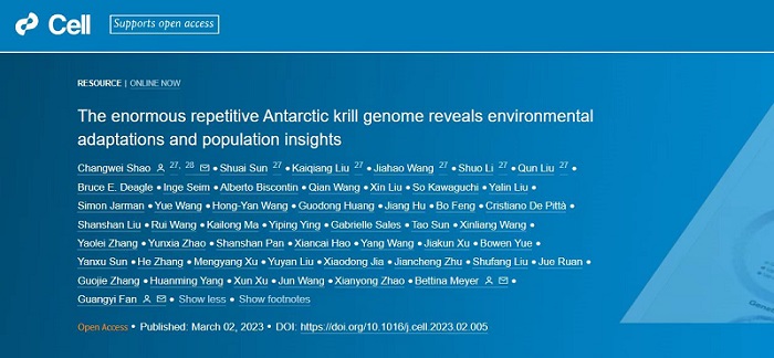 3月2日,國際頂級學(xué)術(shù)期刊《細胞》(《Cell》)以“巨大高重復(fù)基因組圖譜繪制揭示了南極磷蝦環(huán)境適應(yīng)機制及其群體演化歷史”為題,在線發(fā)表了該研究成果。