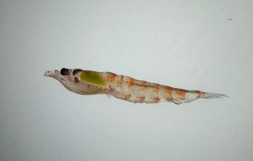 在燈光下,磷蝦的身體幾乎透明,身上有淡紅色的斑點,煞是好看。“南極磷蝦和蝦長得很像,其實不是蝦。它們眼柄基部、頭部、胸的兩側及腹部下面都長有生物螢光器官,在外界的刺激下,可以像螢火蟲一樣發(fā)出類似磷光的光亮,所以被稱為磷蝦。”趙云霞介紹,南極磷蝦是南極地區(qū)的“關鍵物種”,它們以浮游植物為食,是企鵝、海豹、鯨魚等動物的主要食物來源,是食物鏈中不可缺少的一個環(huán)節(jié)。開展磷蝦調查,對更好地認識和保護南極生態(tài)系統(tǒng)具有重要意義。