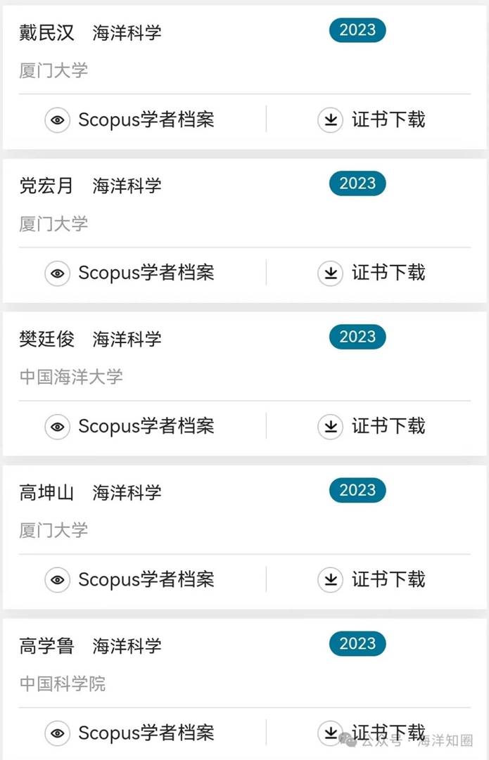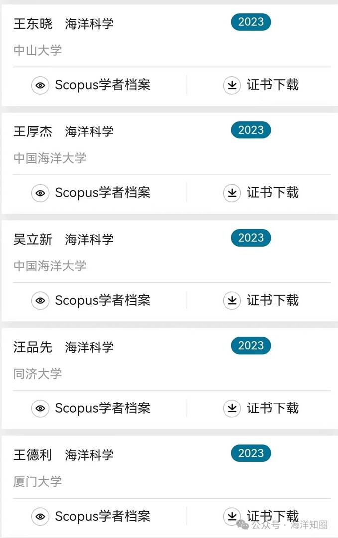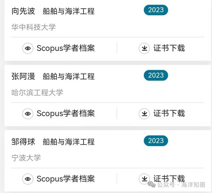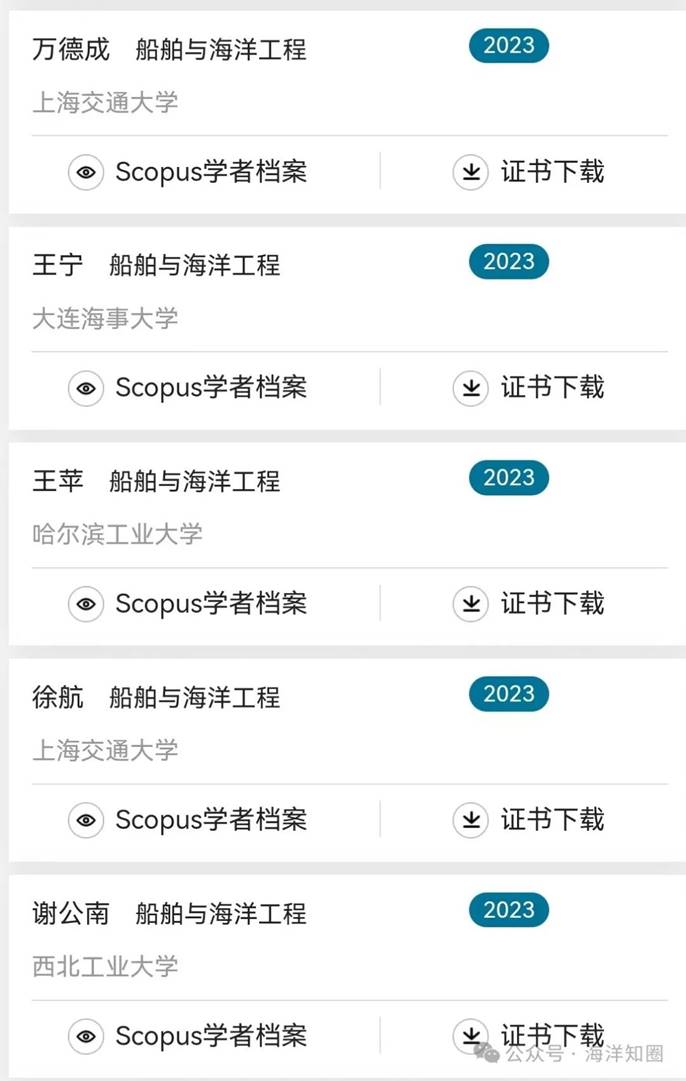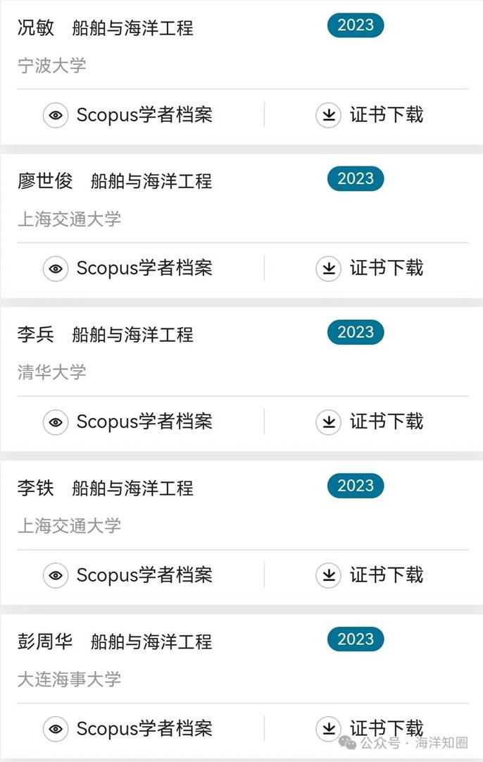 海洋科學(xué)、水產(chǎn)、船舶與海洋工程2023年“中國(guó)高被引學(xué)者”名單如下: