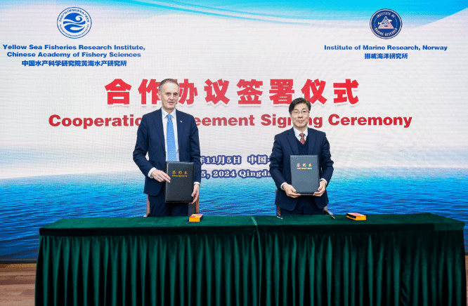 趙憲勇書記與彼得·霍根·莫斯比所長分別代表黃海所與挪威海洋研究所簽署了科技合作協(xié)議,為進一步深化拓展雙方未來在漁業(yè)和水產(chǎn)養(yǎng)殖領(lǐng)域的務(wù)實合作奠定了基礎(chǔ)。