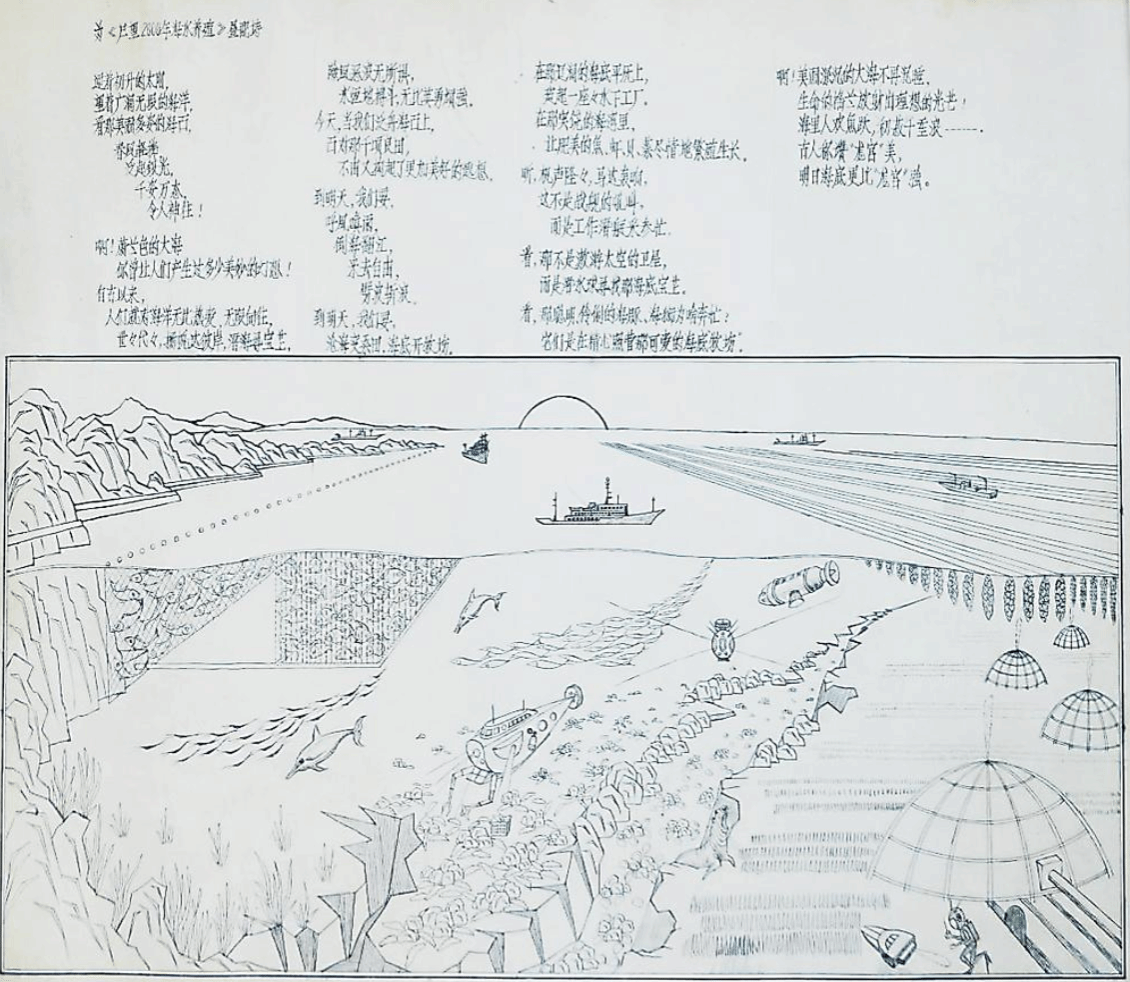 翻開這幅《未來的海洋農牧場》手繪作品,人們能看到一片熱鬧、繁華的海洋世界。書中以故事的形式描繪了如何應用現(xiàn)代科學技術墾辟海洋農牧場,建立海底公園,實現(xiàn)海洋耕作、生產(chǎn)自動化。這幅作品是我國著名海水魚類增養(yǎng)殖學家、中國工程院院士雷霽霖受邀參加青島市科普讀物創(chuàng)作時繪就的,它承載了深深根植于雷霽霖內心的海洋魚類工業(yè)化養(yǎng)殖夢。
