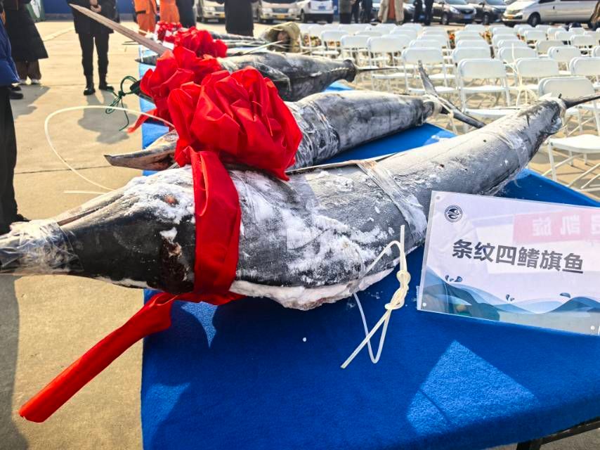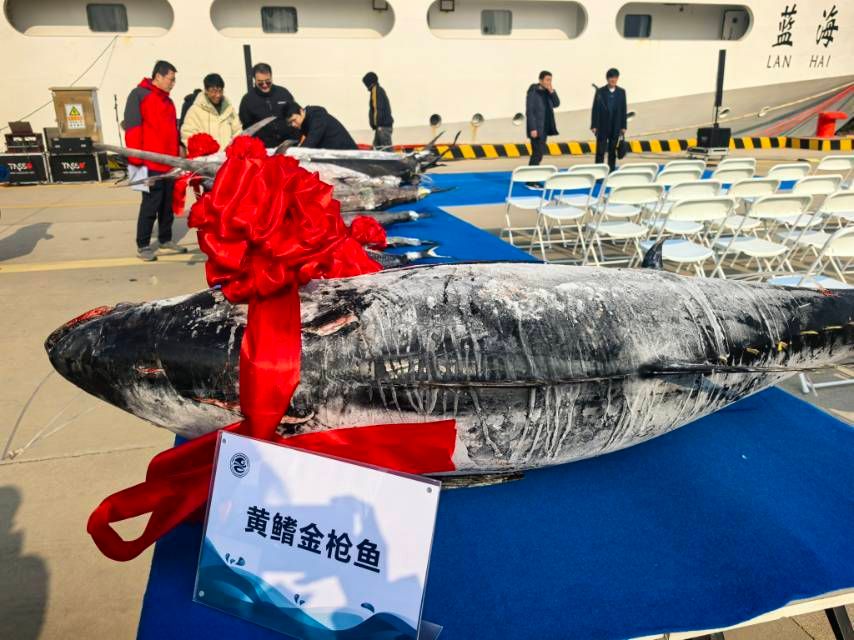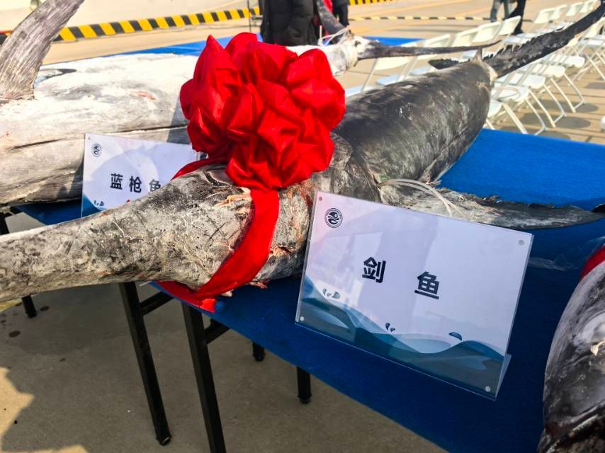 2月18日早,春寒料峭,國家深?;卮a頭上,黃鰭金槍魚、條紋四鰭旗魚、劍魚等樣品正從“藍(lán)海101”號調(diào)查船卸下,整齊地擺放在碼頭上。這是中國水產(chǎn)科學(xué)研究院黃海水產(chǎn)研究所“藍(lán)海101”號海洋漁業(yè)綜合科學(xué)調(diào)查船(以下簡稱“藍(lán)海101”號調(diào)查船)在中西印度洋公海漁業(yè)資源綜合科學(xué)調(diào)查任務(wù)中的收獲,當(dāng)天“藍(lán)海101”號調(diào)查船圓滿完成航次順利返回國家深?;卮a頭。