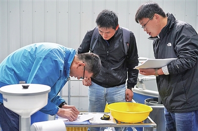 育苗有了保障,病害防控也迎來(lái)突破,李杰制定了詳細(xì)的預(yù)防和治療方案,并研制出用于預(yù)防亞?wèn)|鮭魚(yú)疾病的疫苗,讓亞?wèn)|鮭魚(yú)規(guī)模性發(fā)病的概率大大降低。團(tuán)隊(duì)的核心成員徐后國(guó)博士主要負(fù)責(zé)營(yíng)養(yǎng)飼料開(kāi)發(fā)與品質(zhì)調(diào)控研究,劉寶良博士主要負(fù)責(zé)工廠化循環(huán)水養(yǎng)殖,他們?cè)谧约贺?fù)責(zé)的領(lǐng)域內(nèi)突破了一個(gè)個(gè)養(yǎng)殖技術(shù)難關(guān)。如徐后國(guó)通過(guò)魚(yú)卵、幼苗、成魚(yú)等營(yíng)養(yǎng)組成研究,首創(chuàng)了亞?wèn)|鮭魚(yú)專用的親魚(yú)強(qiáng)化飼料和幼苗開(kāi)口飼料,目前還正在嘗試通過(guò)營(yíng)養(yǎng)學(xué)手段改善亞?wèn)|鮭魚(yú)體色和肉色;劉寶良通過(guò)養(yǎng)殖系統(tǒng)的改造,突破了低溫條件下循環(huán)水養(yǎng)殖水質(zhì)處理的難題。