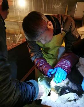 正月初二,陳四清只身一人前往煙臺(tái)天源水產(chǎn)有限公司現(xiàn)場(chǎng)指導(dǎo)企業(yè)開(kāi)展狼鰻產(chǎn)卵、人工授精和培育幼體等工作。之后受疫情影響,一方面回家過(guò)年的公司員工無(wú)法按期返回企業(yè),另一方面團(tuán)隊(duì)成員也無(wú)法如期趕到天源研究基地。面對(duì)人手不足的困境,陳四清毅然獨(dú)自承擔(dān)起狼鰻人工繁育的工作。冰冷的海水中,他不顧手腳上的凍瘡,彎腰一干就是半天,每次工作結(jié)束時(shí)直起腰都很困難。在完成年度狼鰻繁育工作任務(wù)的同時(shí),他還主動(dòng)把自己當(dāng)成了企業(yè)的普通一員,幫助企業(yè)開(kāi)展圓斑星鰈、綠鰭?cǎi)R面鲀等魚(yú)類(lèi)的繁育工作,并承擔(dān)起企業(yè)復(fù)工申請(qǐng)文件和進(jìn)出村證件等辦公室工作,以實(shí)際行動(dòng)來(lái)幫助企業(yè)復(fù)工生產(chǎn)。直至3月18日,恢復(fù)省內(nèi)交通隔離后,陳四清才返回青島。短暫的休整后,他先后到福建、江蘇、威海、煙臺(tái)等地指導(dǎo)企業(yè)復(fù)產(chǎn)復(fù)工。談及疫情期間的工作,陳四清卻說(shuō)“我沒(méi)有什么突出的貢獻(xiàn),只是疫情期間沒(méi)有中斷工作而已。”最樸實(shí)的話語(yǔ),道出了扎根一線科研工作者的心聲。