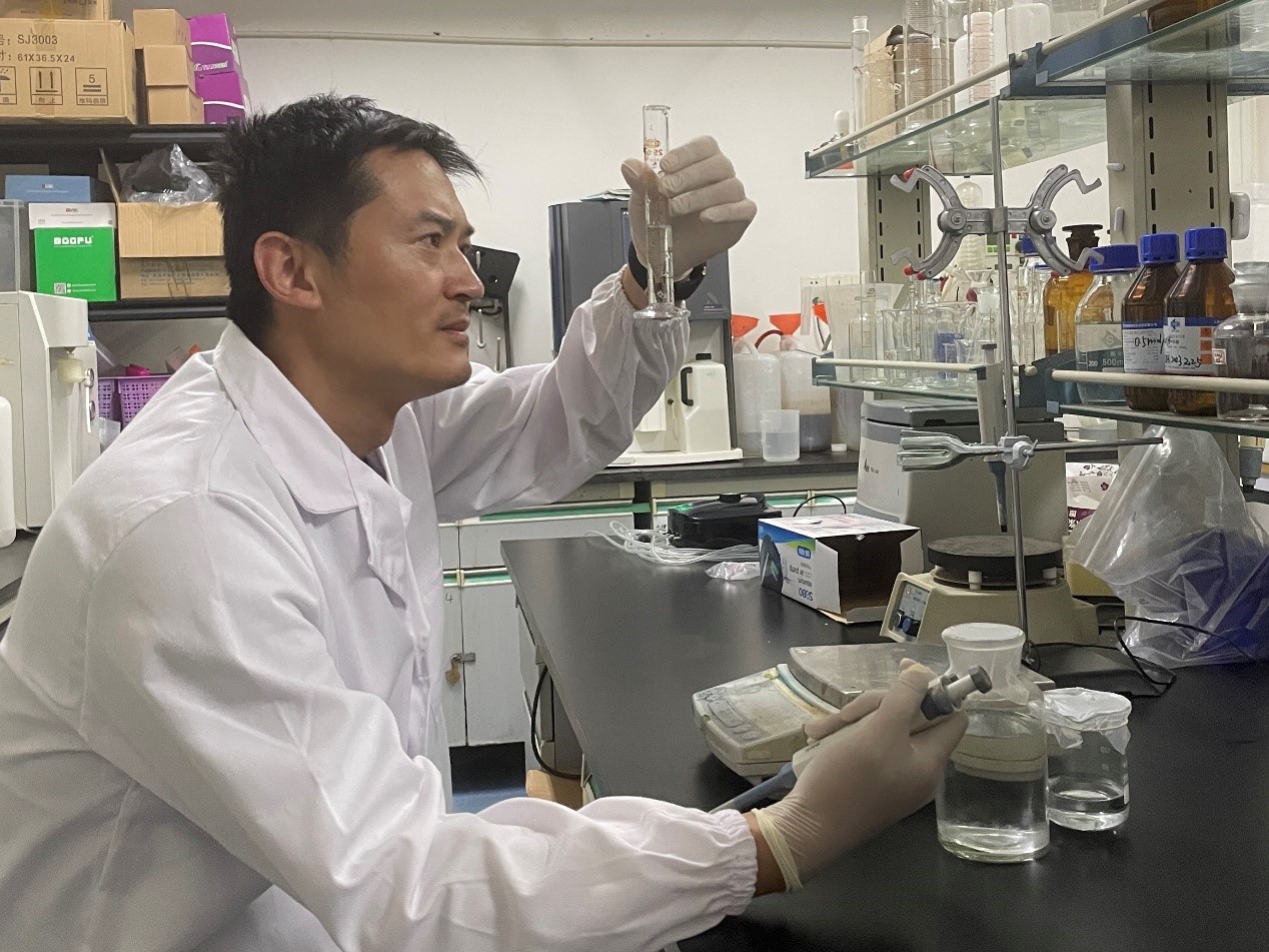 徐后國博士在實驗室分析亞東鮭魚營養(yǎng)成分、研制配合飼料