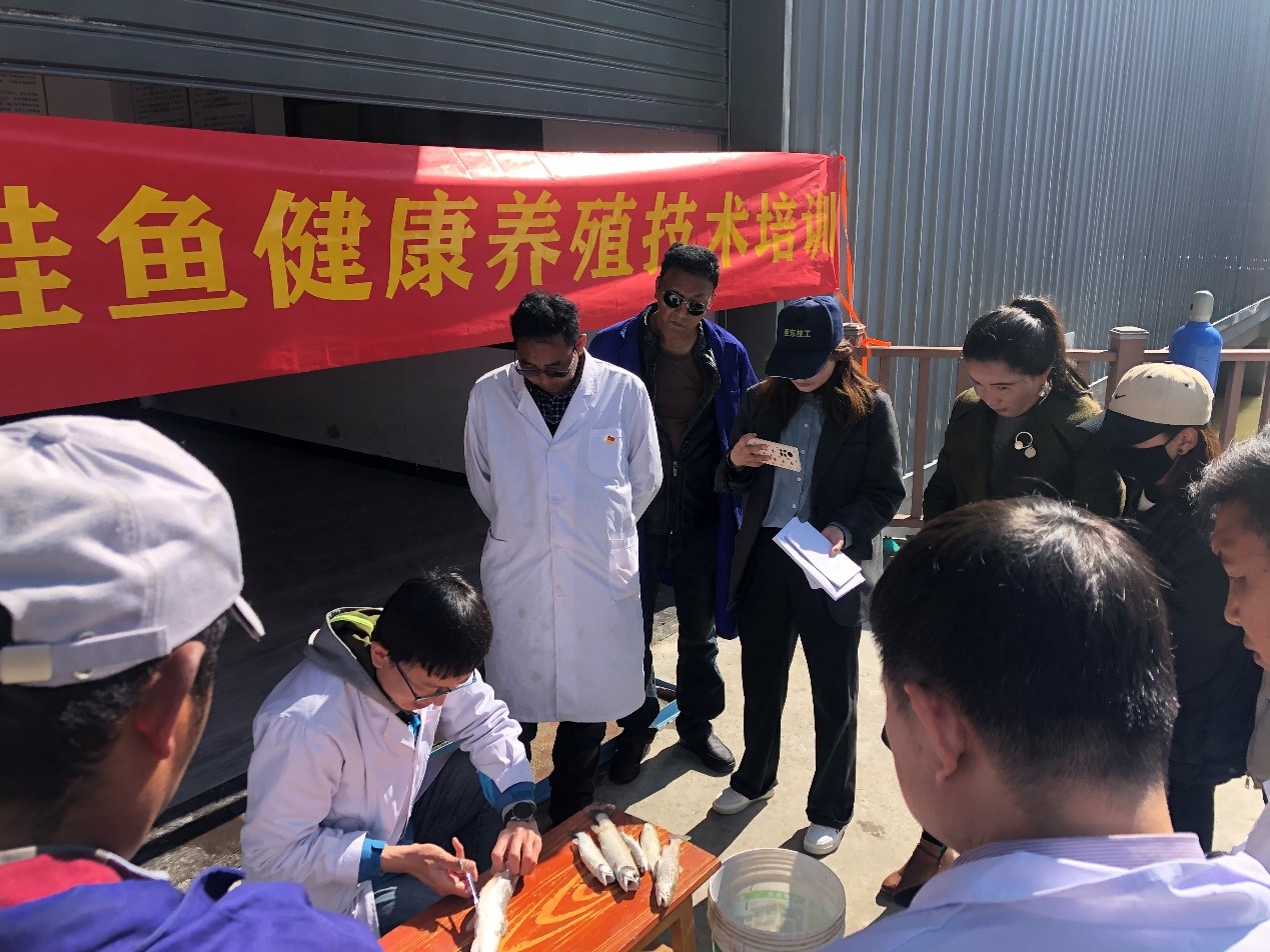 李杰博士培訓當?shù)丶夹g人員進行亞東鮭免疫