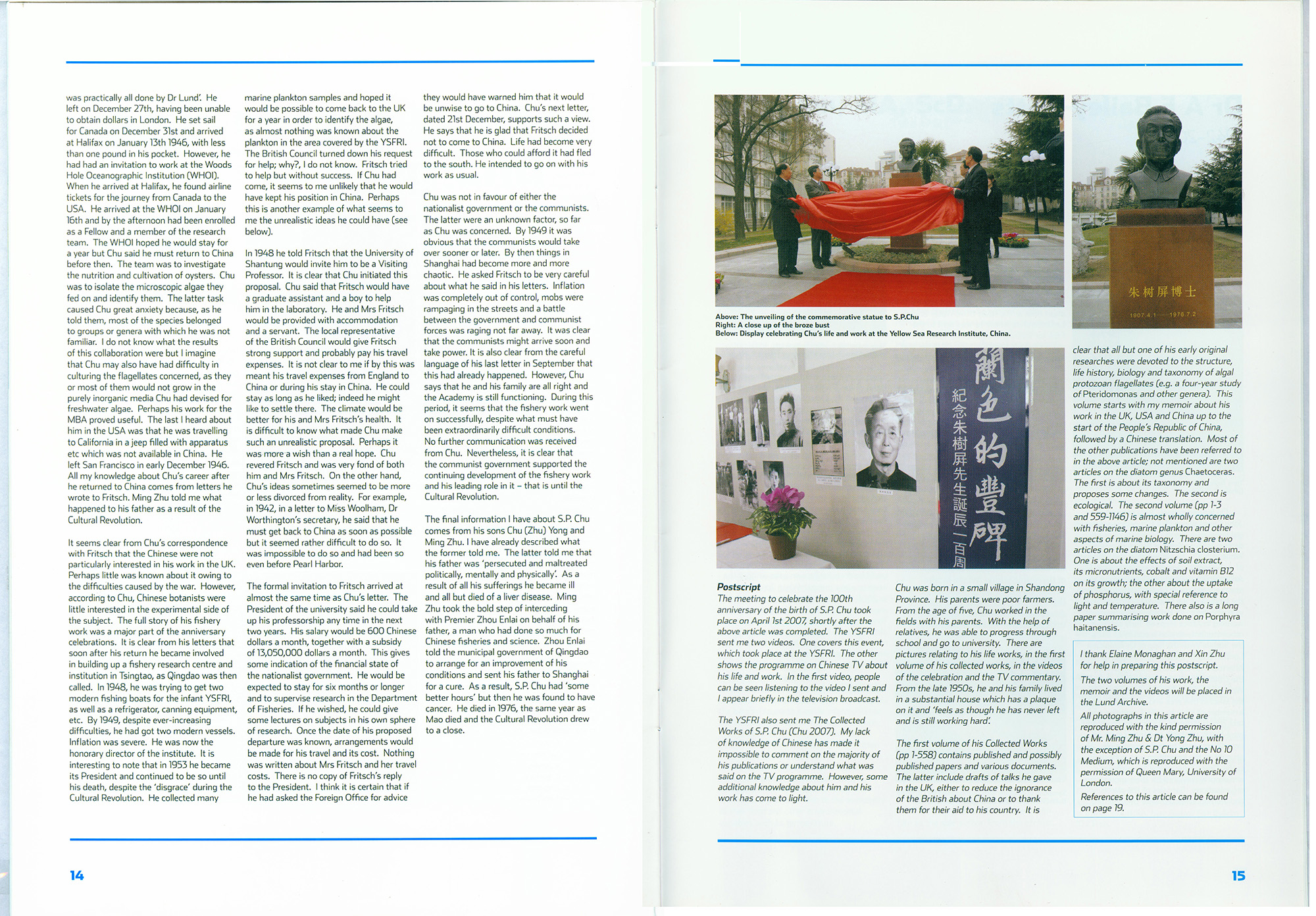 英國《fba News》刊登了隆德博士的紀(jì)念文章并報(bào)道了在青島舉行的朱樹屏先生誕辰100周年紀(jì)念大會實(shí)況