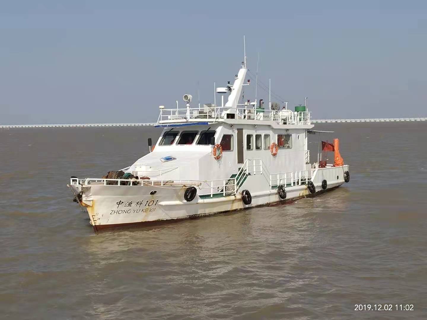 “中漁科101”號近岸漁業(yè)資源與環(huán)境調查船,于2012年8月建成并投入使用,船長21.9米,總噸位75,主機功率:140.0千瓦。